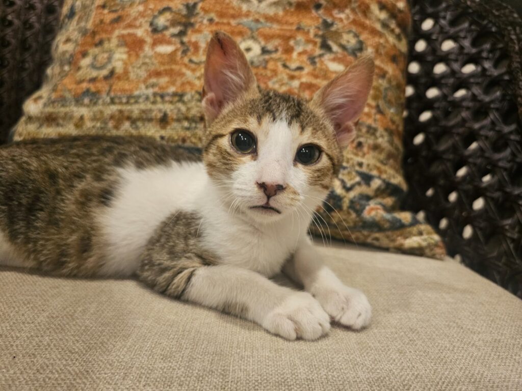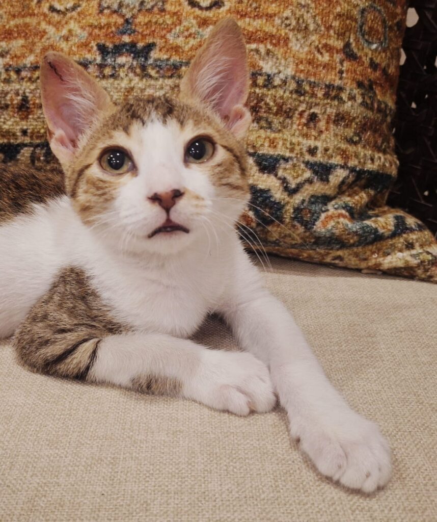 Myles literally goes miles. Full of curiosity and energy, he is here to learn and play. He is great at cat bonding. He’s being fostered with a kind dog which is why he is comfortable around canines.